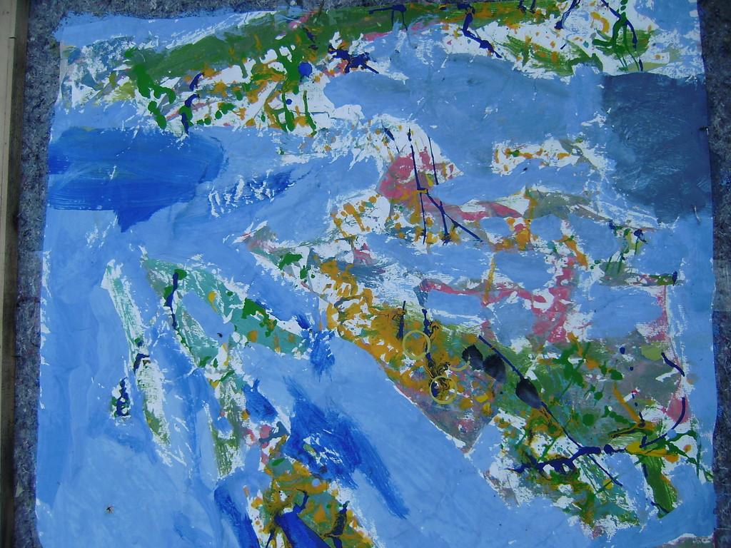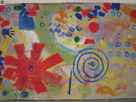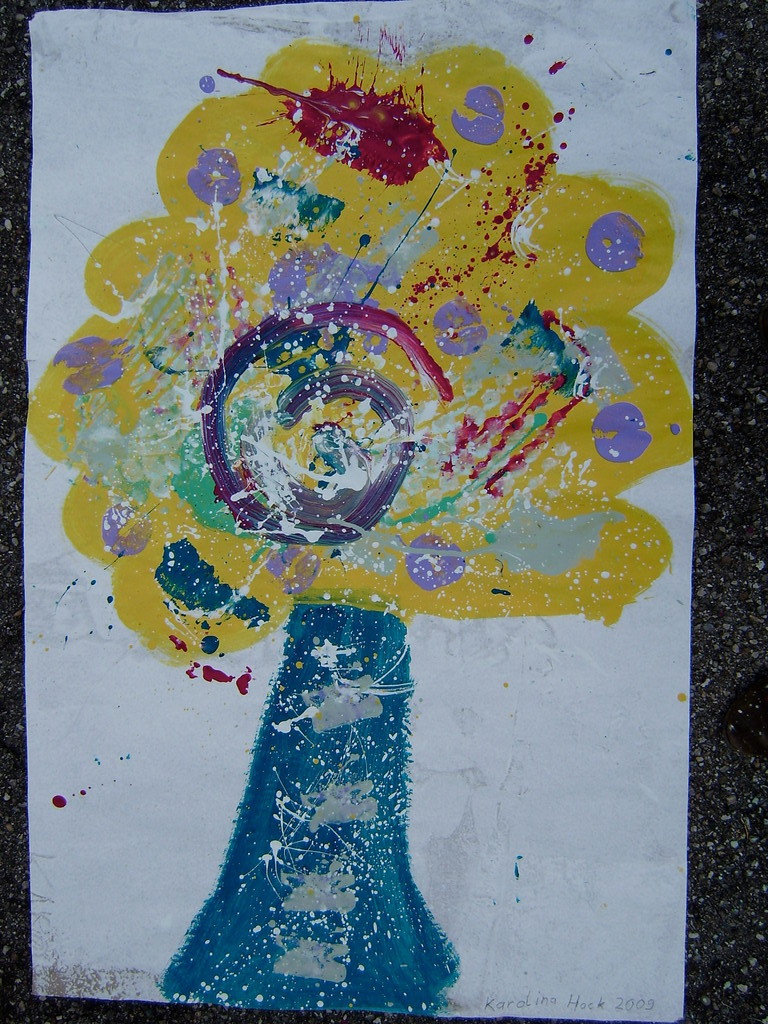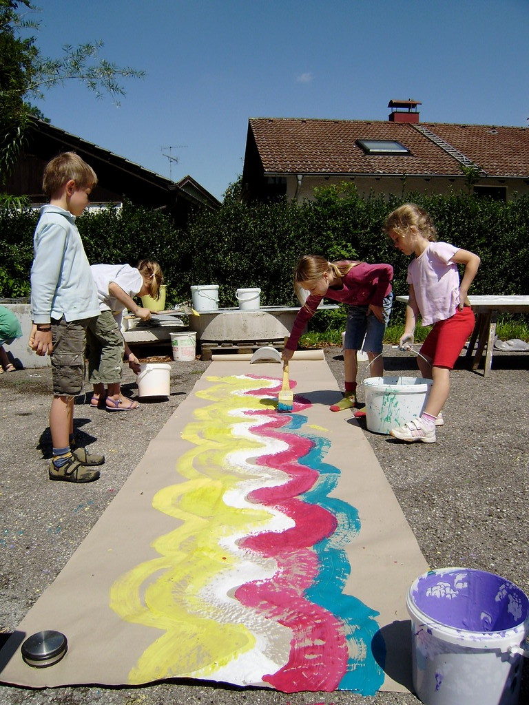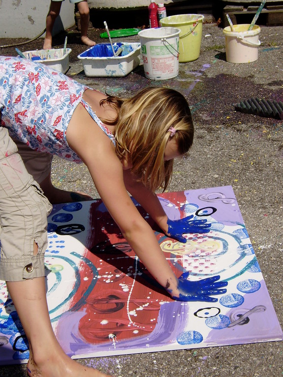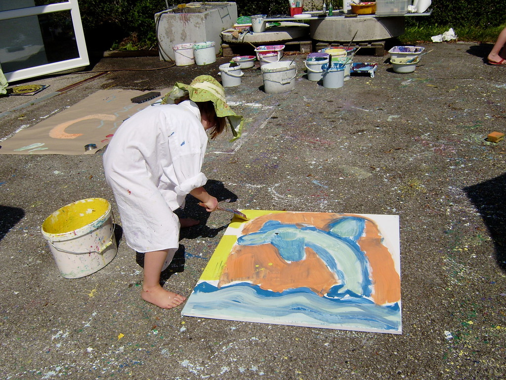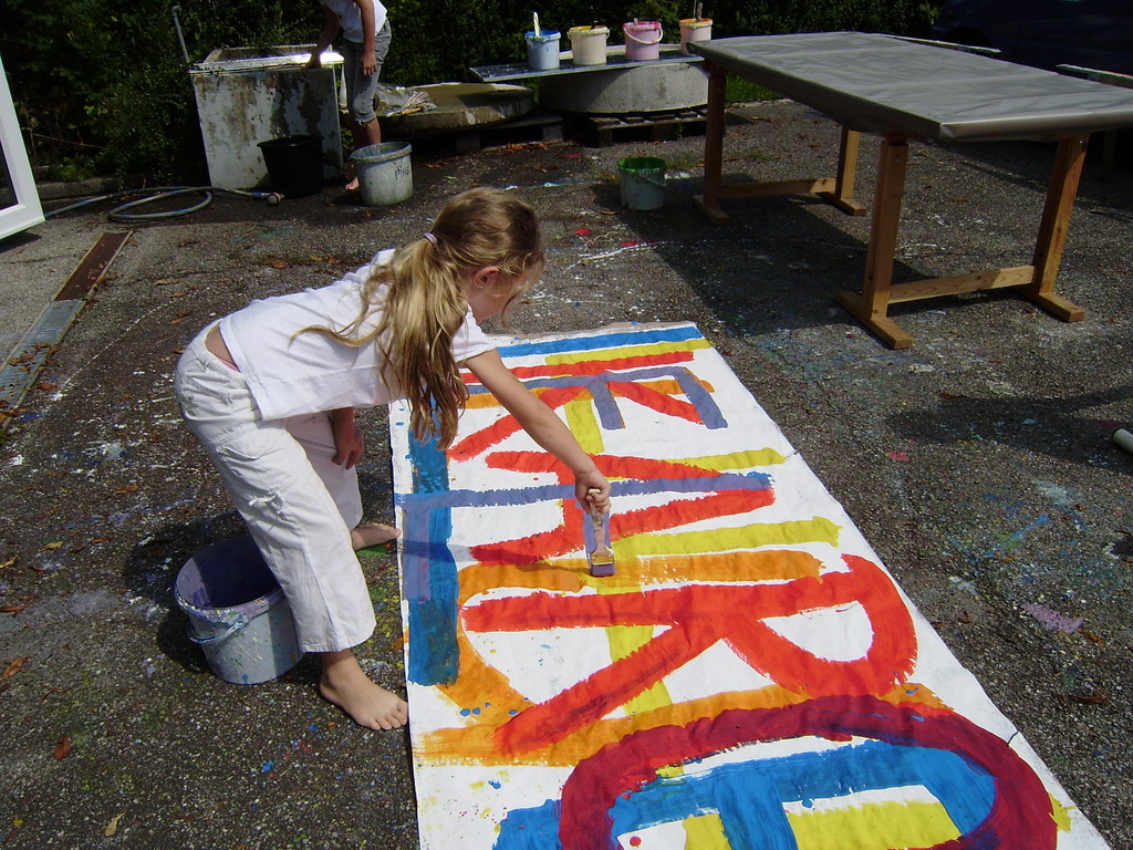 Malen und Gestalten auf großen Bildflächen wie Papier und Leinwand. Wir arbeiten mit Pinsel und Spachtel, lassen Farben fließen. Wir drucken auf Papier, formen und gestalten, tauchen ein in die Welt der Phantasie. Mit etwas Geduld entstehen so die schönsten Bilder und Objekte.